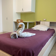 Les groupes Poussins, Benjamins, Minimes, Cadets disposent de leurs propres espaces collectifs, (cuisine - salle à manger, salle télévision, salle d'activités...) et individuels (chambres et salles de bain individuelles et chambres doubles et salle de bain commune pour les plus petits).